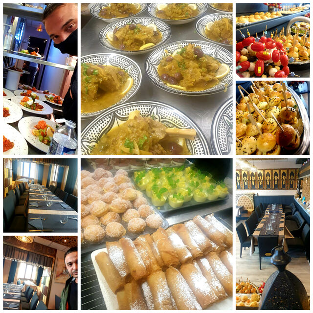 Couscous Royal, Tagines 3 fruits secs, Pastillas, Bricks Grillades, pâtisseries Marocaines..., tout est là pour vous transporter aux souks et envoûtements des Souks de la ville de Marrakech ...